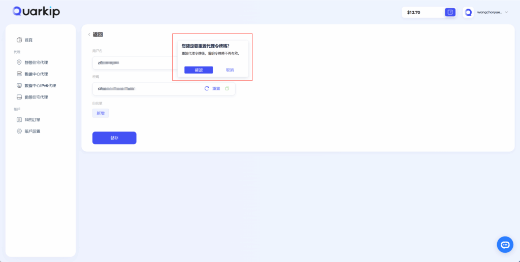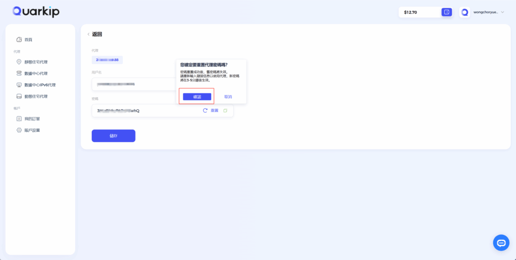密碼是代理連線的核心安全憑證。為防止密碼外洩導致帳號封禁、資料外洩等安全風險,QuarkIP 支援對代理密碼進行重設作業。重設後舊密碼立即失效,需使用新密碼重新設定代理。