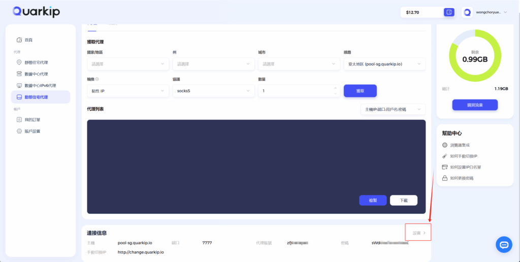 1、进入动态住宅代理页面,点击设置